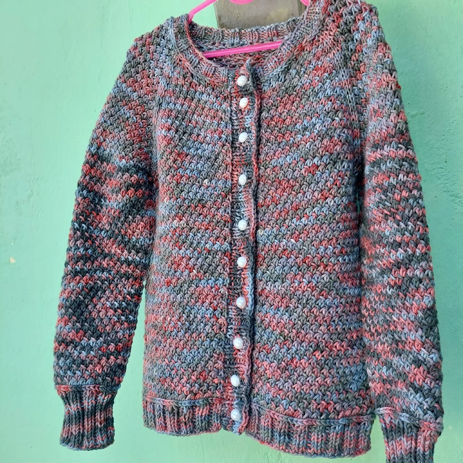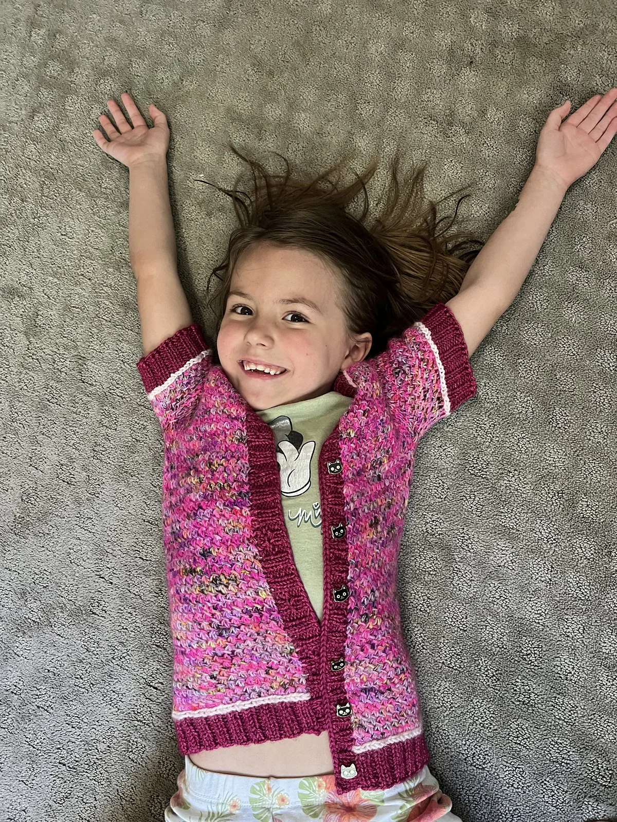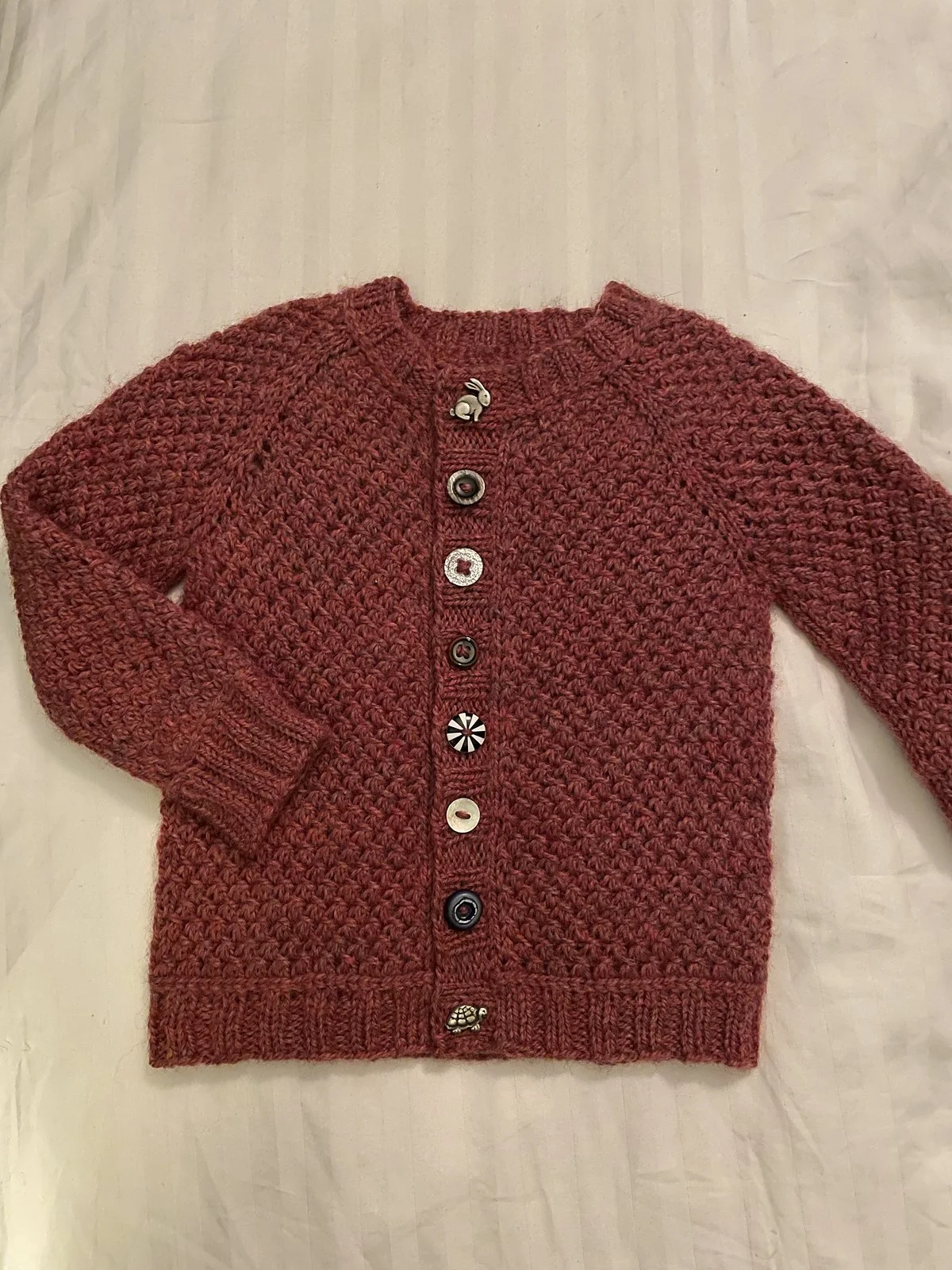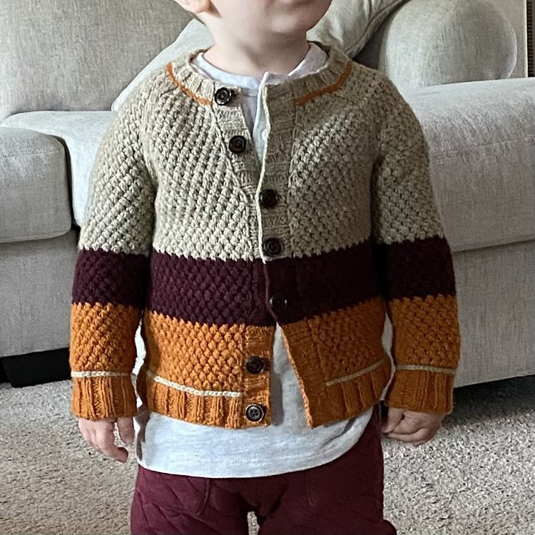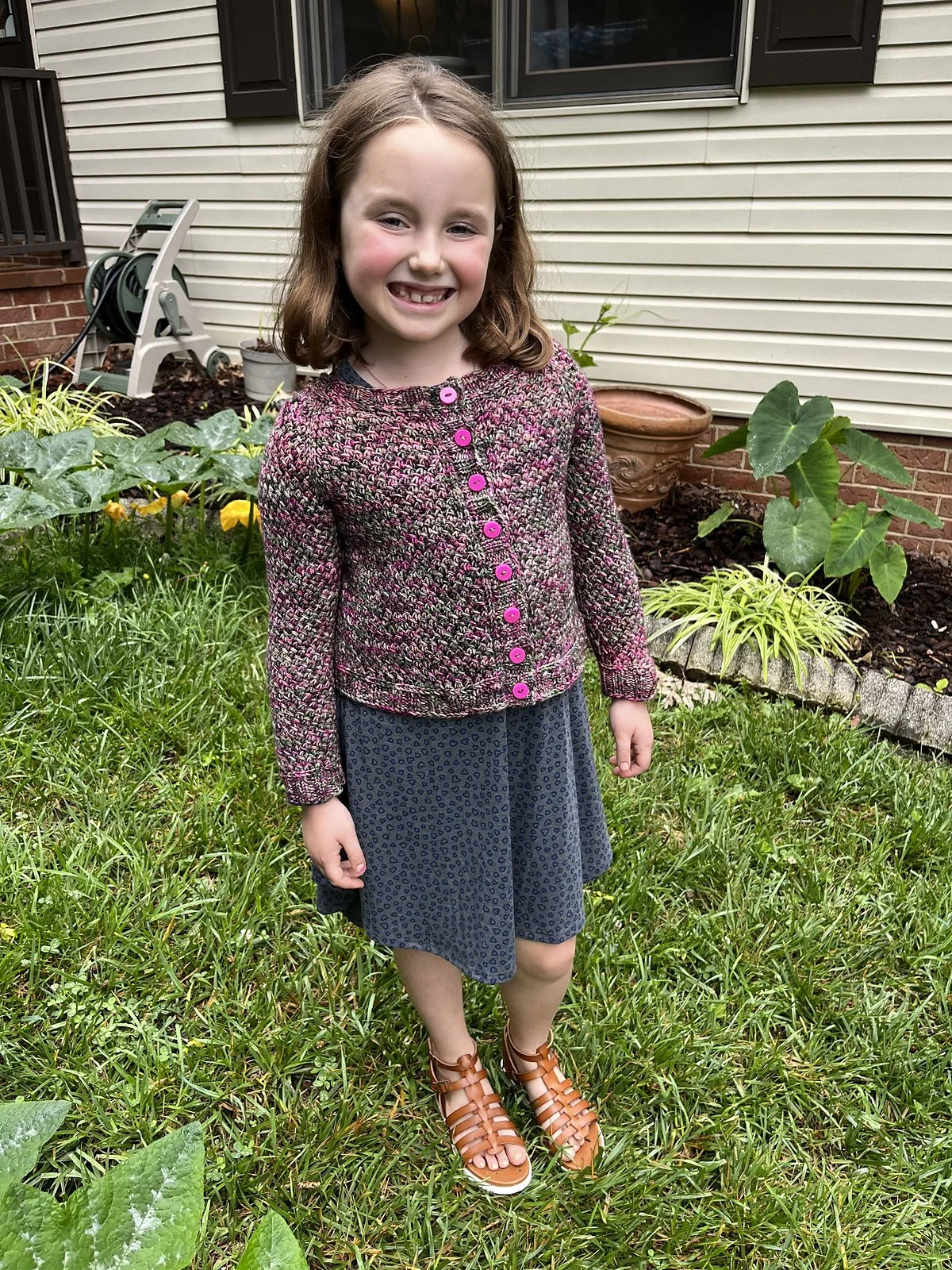 “I love this pattern / project SOOOO much. I look forward to making an adult size for myself. I just have to decide between pullover and cardigan, or at least which to make first ;)”