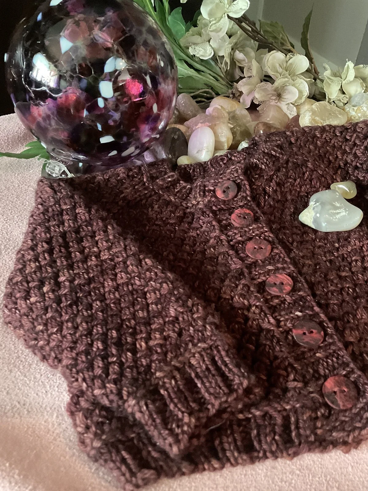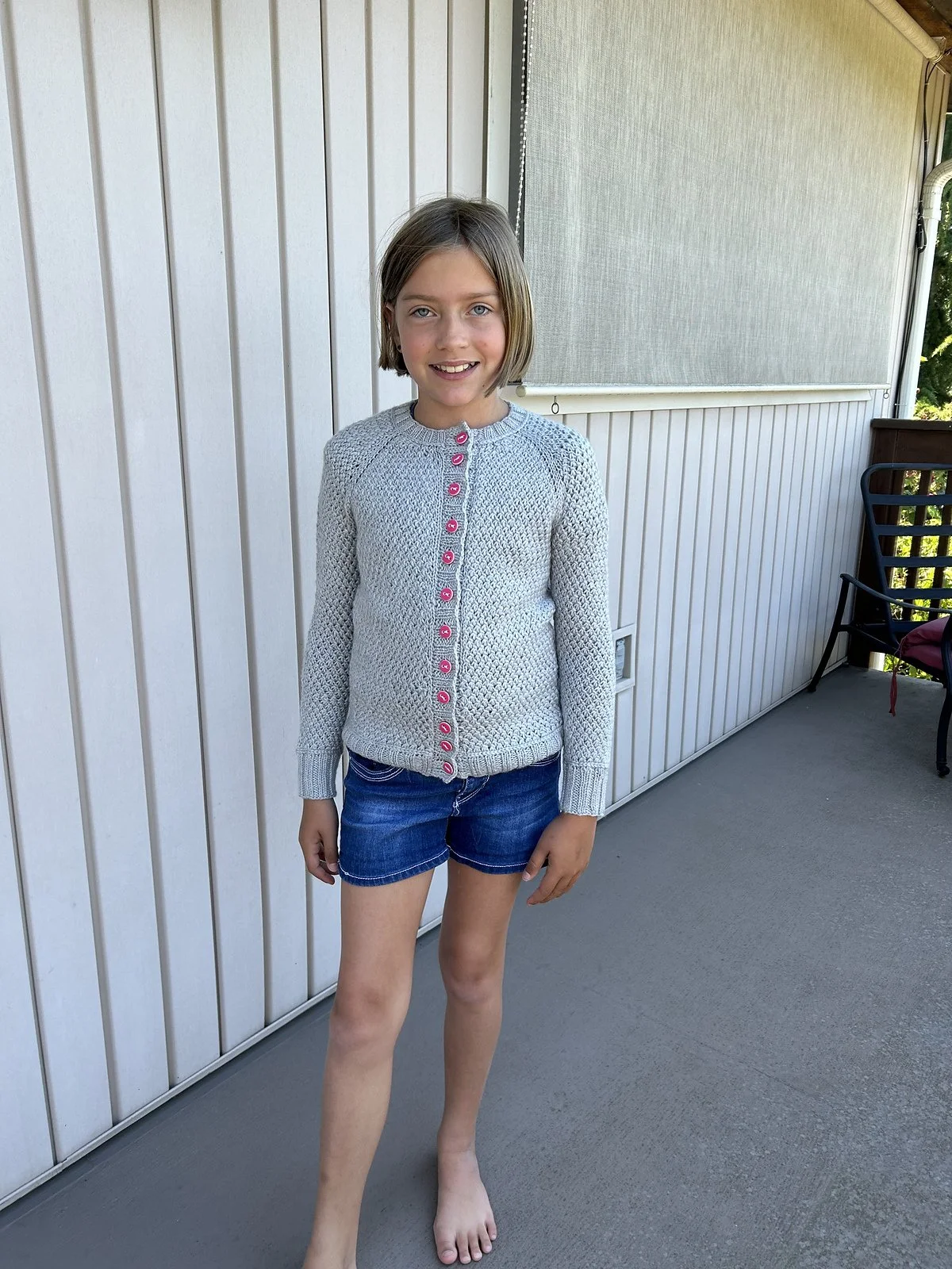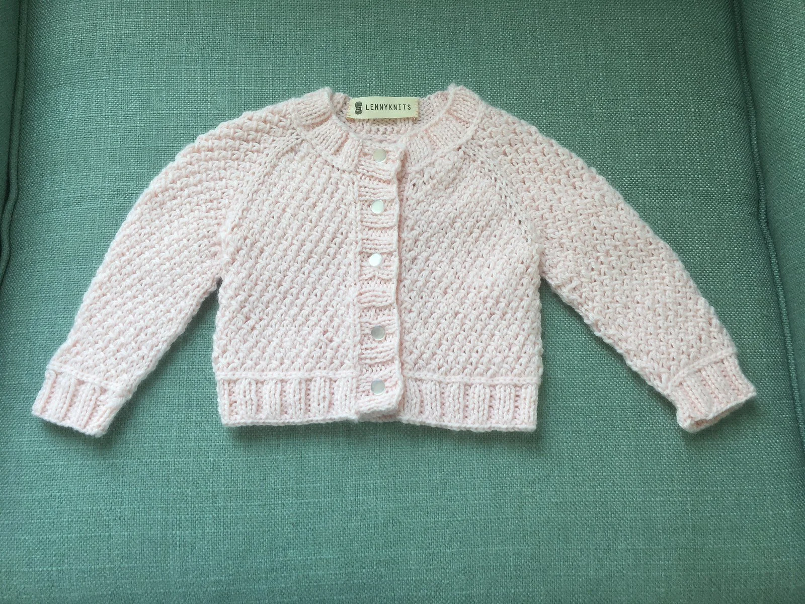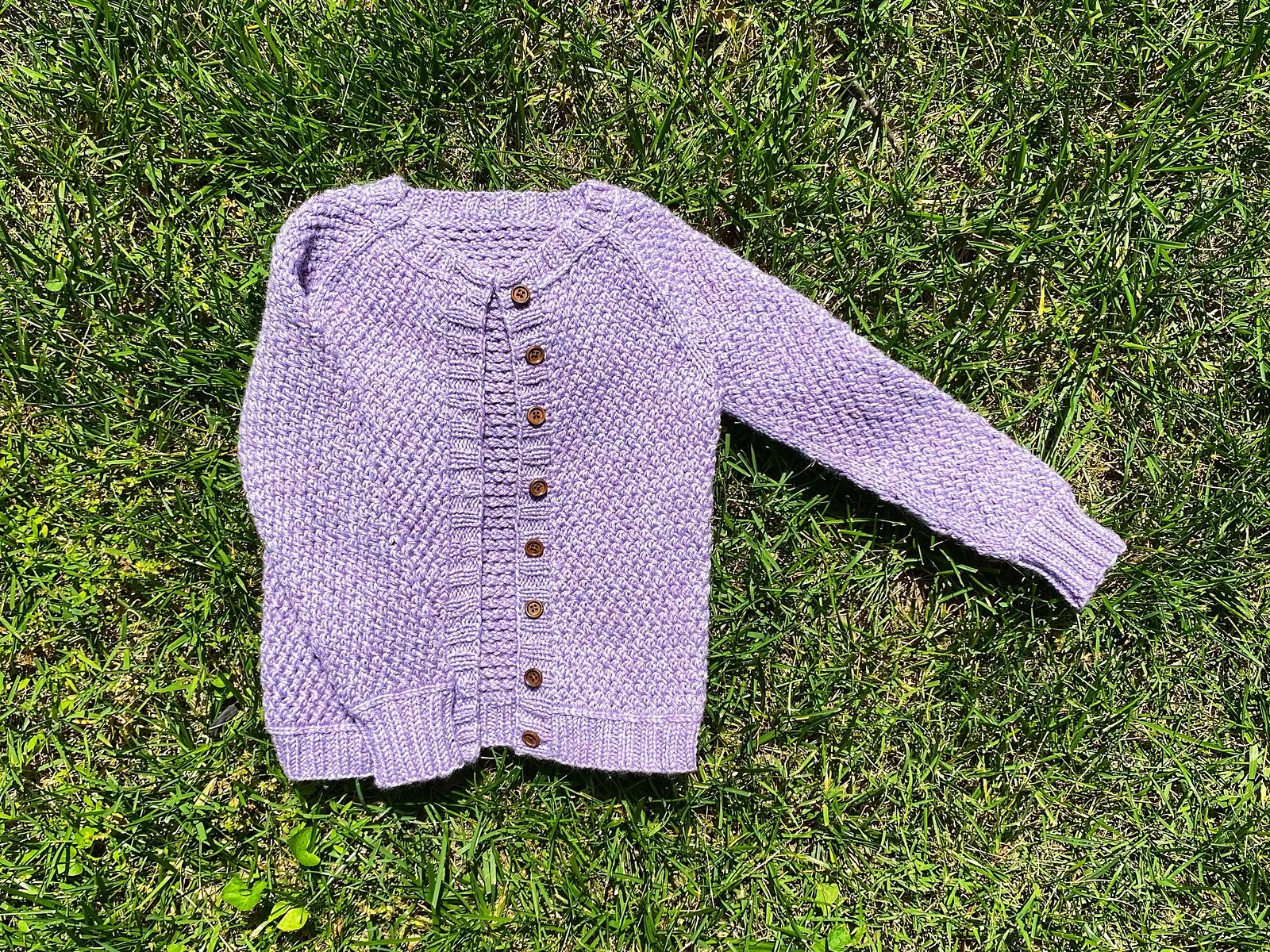 A surprisingly quick knit: The combination of DK weight yarn and a small human-sized project means this cardigan knits up faster than you'd expect, making it perfect for a last-minute gift or a quick dose of satisfaction.